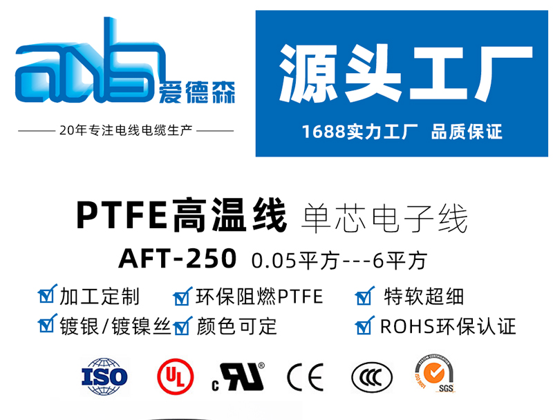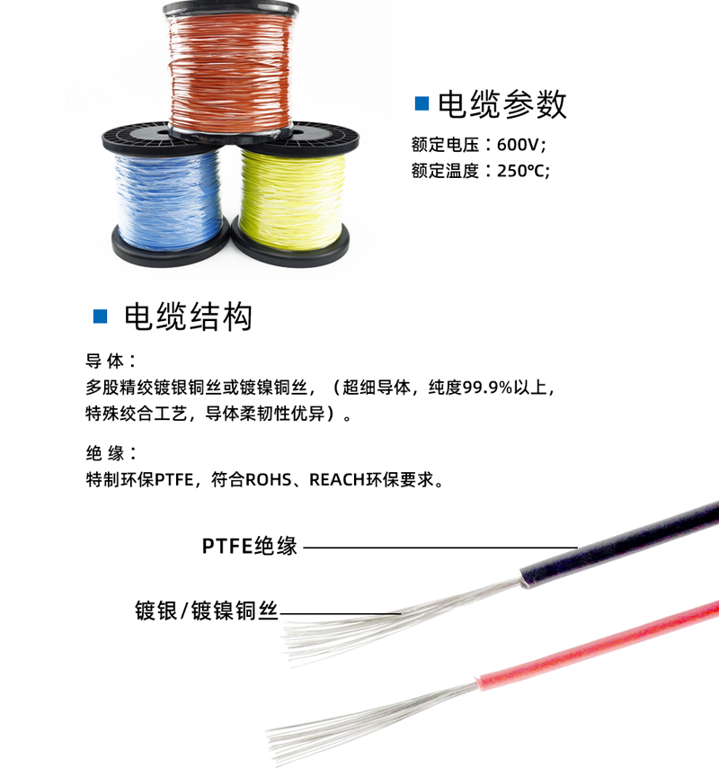 品名:PTFE擠出高溫線型號(hào):AFT250、PTFE2501、產(chǎn)品參數(shù): 導(dǎo)體:鍍銀銅絲絕緣:PTFE 顏色:紅/黃/蘭/白/黑/棕/紫/灰/色等2、電纜特性:幾乎不溶于任何有機(jī)溶劑,耐酸堿、耐分解劑、油漆、汽油、機(jī)油和許多其他化學(xué)介質(zhì)高伸長(zhǎng)率、抗撕裂、防水解、防塵、高絕緣強(qiáng)度、耐微生物、耐候及抗臭氧性能好,高頻損耗小,不吸潮,絕緣電阻大具有良好的不燃性及不老化性能,使用壽命長(zhǎng)3、電纜