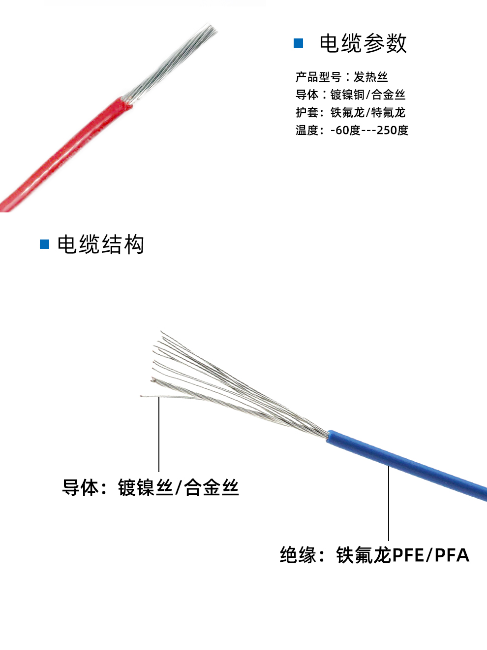 鐵氟龍發(fā)熱線,簡稱電熱線, 其通電后利用電流的熱效應(yīng)發(fā)熱的導(dǎo)線,內(nèi)部采用鎳鉻合金,康銅合金,銅鎳合金為加熱導(dǎo)體, 在基礎(chǔ)的物理學(xué)中被稱作電阻線,采用鐵氟龍為絕緣層,以<ω m="">為電阻單位,粗細(xì)單位顏色任意可選,產(chǎn)品耐溫極限為250℃, 長期180℃以下使用壽命長達(dá)15年以上, 鐵氟龍電熱線產(chǎn)品不粘性、耐熱性好、滑動(dòng)性、抗?jié)裥浴?可抗強(qiáng)酸強(qiáng)堿、耐腐蝕、耐火不燃、氧指數(shù)高、低煙無鹵、不老化、易剝線、高強(qiáng)度耐摩擦,通常可以承受10KG-50KG不等的拉力,被行業(yè)認(rèn)定為賣點(diǎn)最好的加熱組件之一